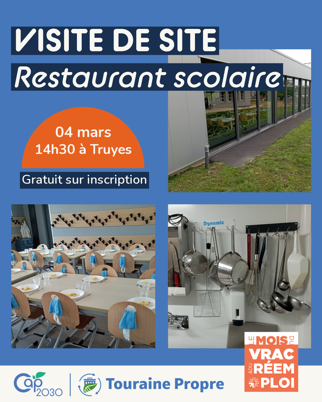 Touraine Propre invite les habitants d’Indre-et-Loire à visiter les coulisses du restaurant scolaire de l’école primaire de Truyes, un établissement exemplaire en matière de réduction des déchets. Les participants pourront découvrir les différentes pratiques mises en place, telles que le réemploi, la réduction des emballages jetables et le compostage, ainsi que les actions menées pour limiter le gaspillage alimentaire.